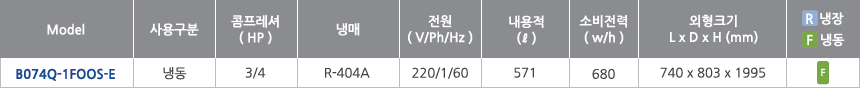 ● 간접 냉각 방식으로 고내 온도 분포가 일정하며 냉각 속도가 빠름.● 단열성이 좋은 고밀도 풀리우레탄 사용.● 편리한 유지보수를 위해 유니트-슬라이딩 방식 적용.● 내식성 고압 배관열에 의한 자동 제상 방식을 채택하여 짧은 시간에 성에 제거로 불필요한 전력 소모와 냉기의 유출을 방지.● 사용온도 : 냉동 -30℃※ 본제품의 사양은 기술 개발로 인하여 사전에 예고없이 변경 될 수 있습니다.