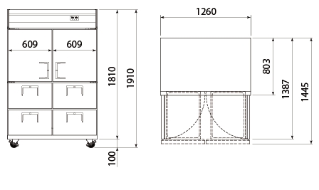 ● 간접 냉각 방식으로 고내 온도 분포가 일정하며 냉각 속도가 빠름.