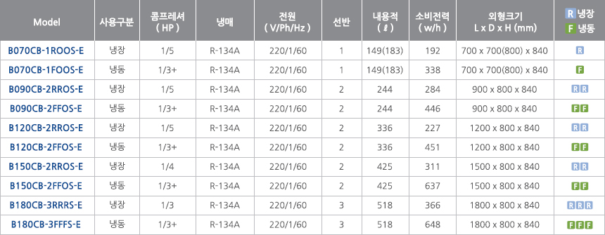 ● 간접 냉각 방식으로 고내 온도 분포가 일정하며 냉각 속도가 빠름.● 온도 조절기 적용.● 내구성 강한 고급 스테인레스 사용. (내·외장) ● 단열성 좋은 고밀도 폴리우레탄 사용.● 편리한 유지보수를 위해 유니트-슬라이딩 방식 적용.● 내식성 고압 배관열에 의한 제상수 자연 증발식.● 사용 온도 : 냉장 0℃~7℃, 냉동 -23℃~0℃※ 본제품의 사양은 기술 개발로 인하여 사전에 예고없이 변경 될 수 있습니다.