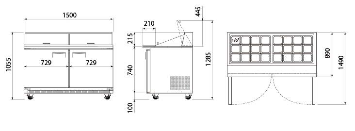 ● 분리 가능한 뚜껑 적용으로 식자재의 신선도를 길게 유지하며, 불필요한 전력 소모와 냉기의 유출을 방지하고, 용기내의 온도를 1℃~5℃로 유지함.