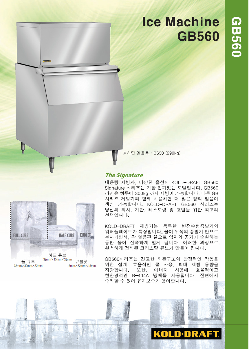 대용량 제빙과 다양한 옵션의 KOLD-DRAFT GB560 Signature 시리지는 가장 인기있는 모델입니다.