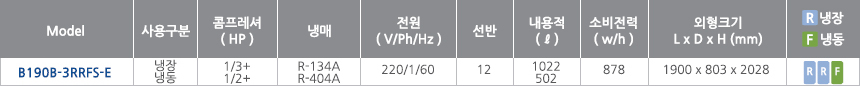 ● 사용 온도 : 냉장 0℃~7℃, 냉동 -23℃~0℃