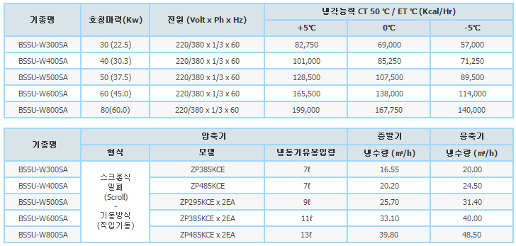 ■ 냉수 입.출구 온도 : 입구 12℃ / 출구 5℃