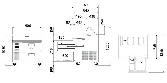 ● 분리 가능한 뚜껑 적용으로 식자재의 신선도를 길게 유지하며, 불필요한 전력 소모와 냉기의 유출을 방지하고, 용기내의 온도를 1℃~5℃로 유지함.