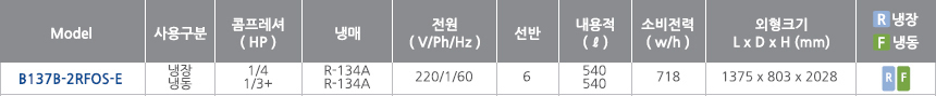 ● 사용 온도 : 냉장 0℃~7℃, 냉동 -23℃~0℃