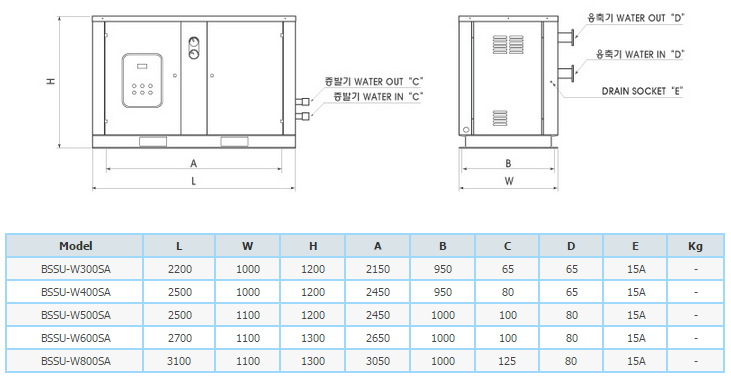 ■ 보호장치 : 고.저압 압력 스위치(D.P.C), 가용전, 동결방지 T/C, 역상방지 릴레이, 과전류 릴레이